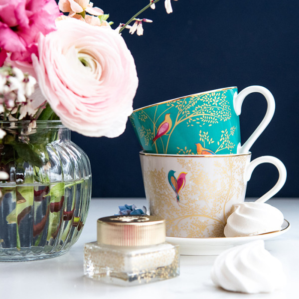 Sara Miller's signature design is represented beautifully on this dream-like Teacup & Saucer. With its light grey background, the pattern