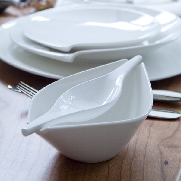 The elegant, pure white Flow crockery range made of high-quality Premium Porcelain captivates with bold curved lines and a timeless elegance.