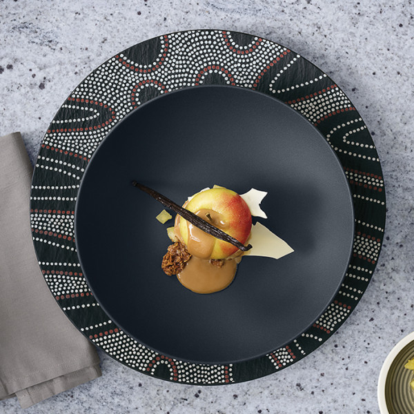 Manufacture Rock Desert is porcelain in its original form. The artisanal style becomes a tactile experience. The striking pattern on the black