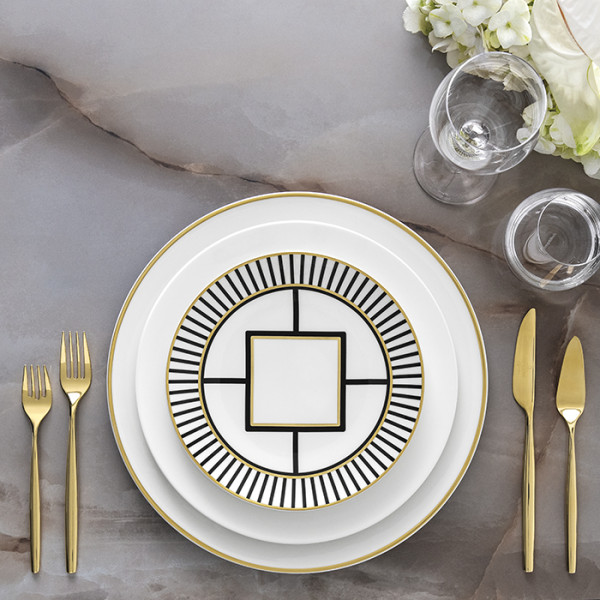 Whether a purist white or a geometric pattern in expressive black and gold – all pieces in the high-quality MetroChic tableware and gift