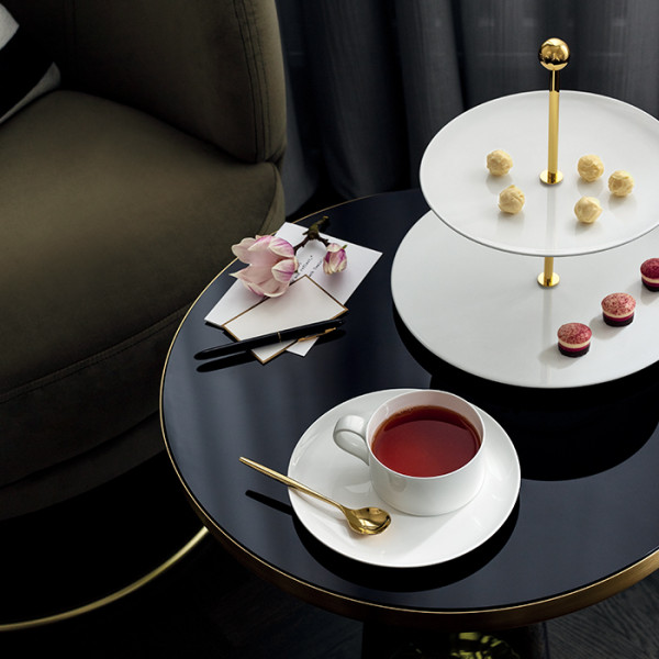 Whether a purist white or a geometric pattern in expressive black and gold – all pieces in the high-quality MetroChic tableware and gift