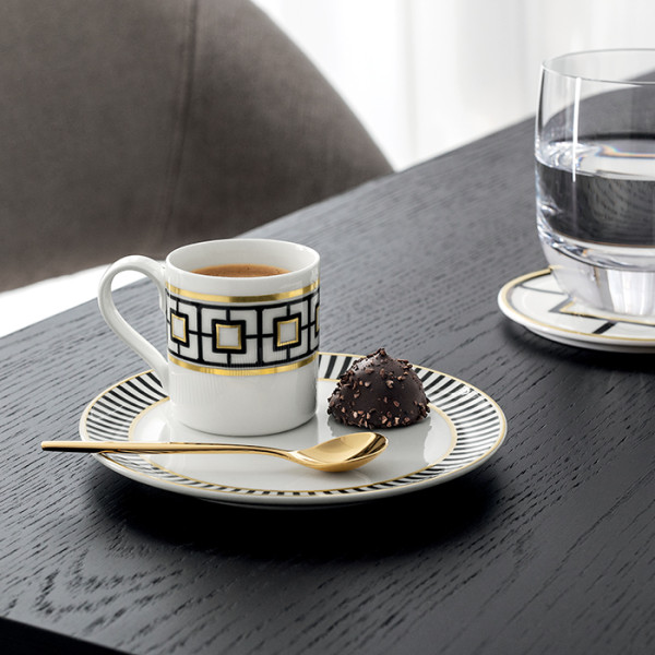 Whether a purist white or a geometric pattern in expressive black and gold – all pieces in the high-quality MetroChic tableware and gift